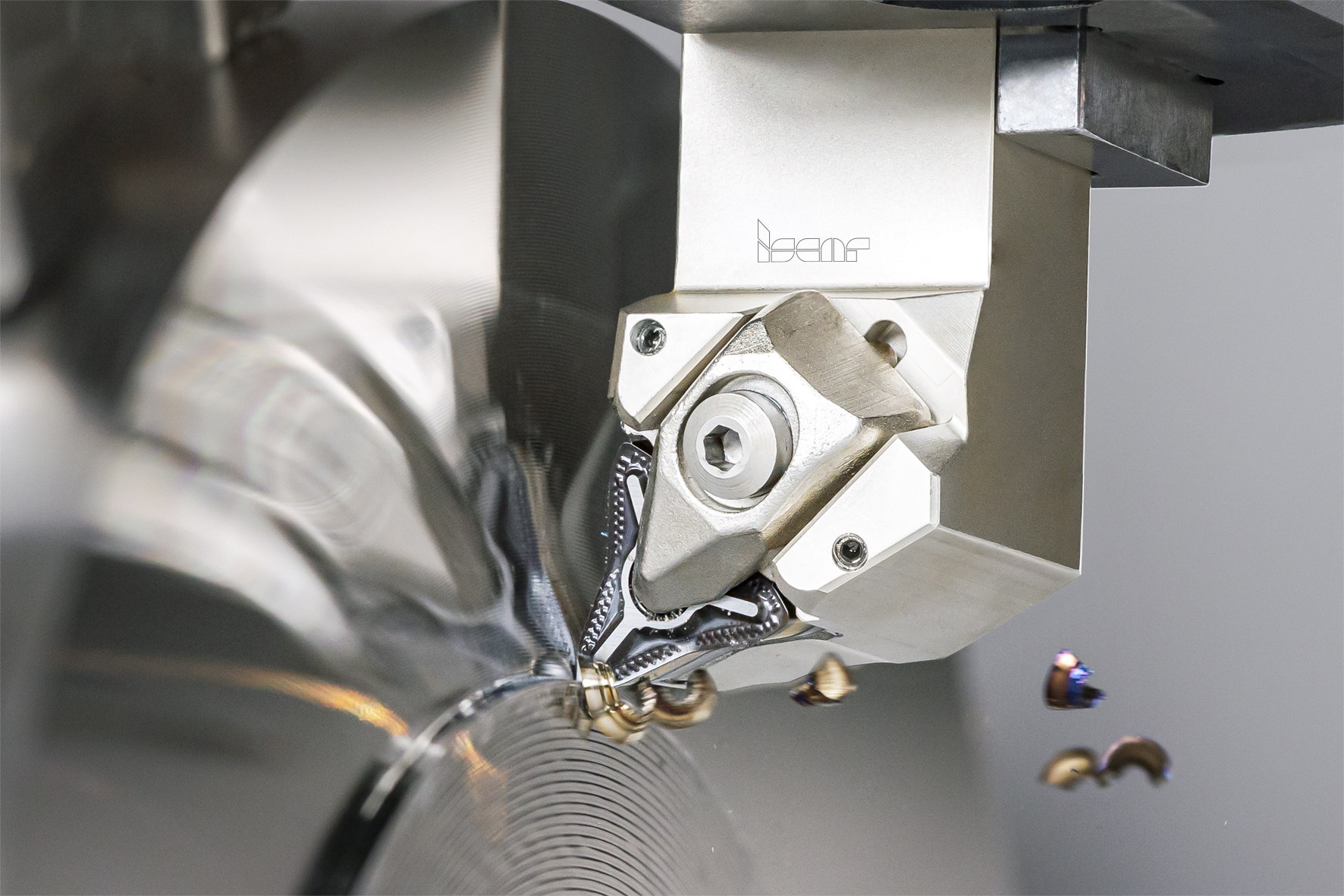 In turning operations, a concave equilateral hexagon shape for indexable inserts offers a significant advantage – the expanded effective range of the insert. This shape enables machining of hard-to-reach areas while also increasing the number of indexable cutting edges. Its symmetry is perfectly suited to the demands of multi-directional cutting. It is therefore not surprising that the concave equilateral hexagon has been selected as the shape for the latest Q6-MNMG inserts (Fig. 2), which are mounted in ISCAR's QUICK-TURN tools for machining in multiple directions (such as front and back), profiling, facing, and more, especially in roughing applications that feature significant load. To ensure a fixed position and handle variable cutting forces when turning in multiple directions, the insert features three ridges on both its top and bottom surfaces. These ridges fit into corresponding grooves in the base of the insert pocket. Importantly, the ridges, located on the rake faces, do not hinder chip flow during cutting. This new solution, which utilizes concave-hexagonal indexable inserts, delivers impressive performance and allows various tasks to be accomplished with a single versatile turning tool.